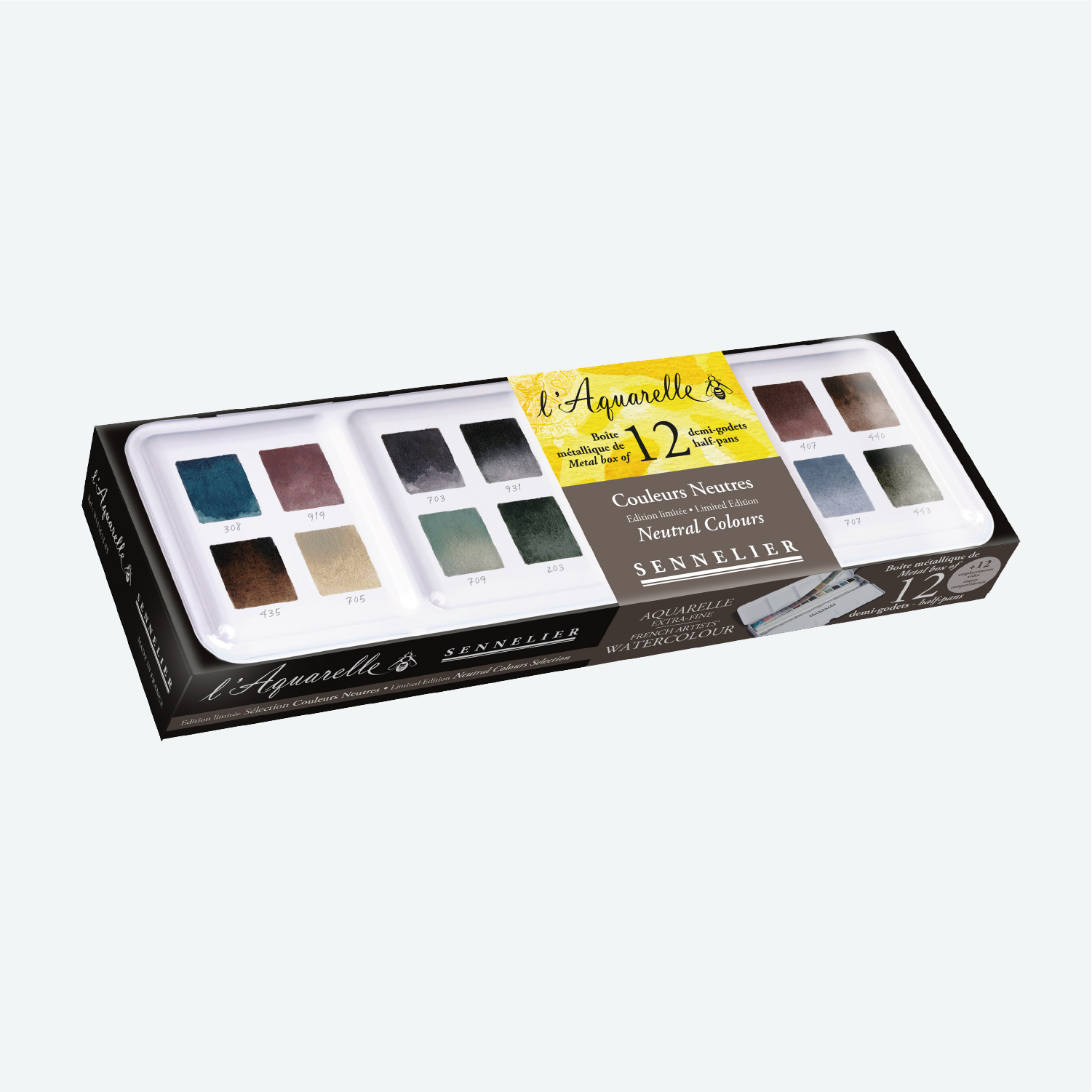 Sennelier Watercolour 1/2 Pan Metal Neutrals Box Set